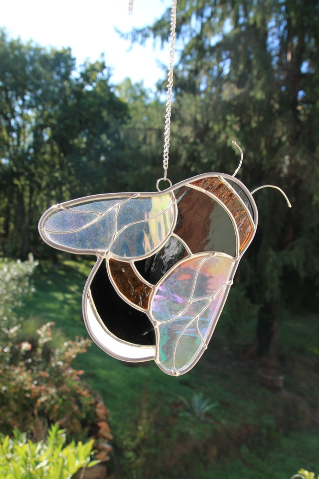 Chaque pièce est façonnée à la main dans mon atelier du Périgord, et assemblée au cuivre, à l’étain et au plomb, selon la technique Tiffany.
