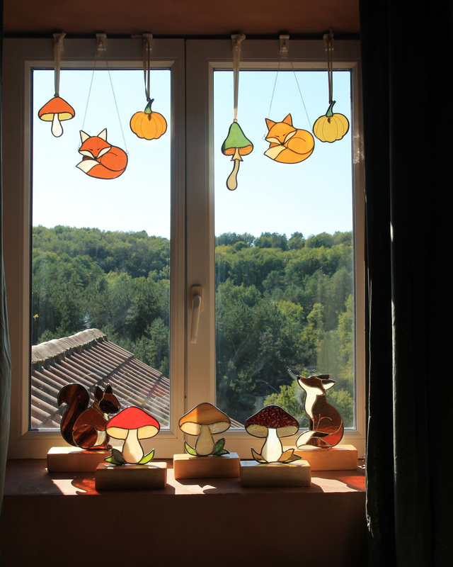 Chaque pièce est façonnée à la main dans mon atelier du Périgord, et assemblée au cuivre, à l’étain et au plomb, selon la technique Tiffany.