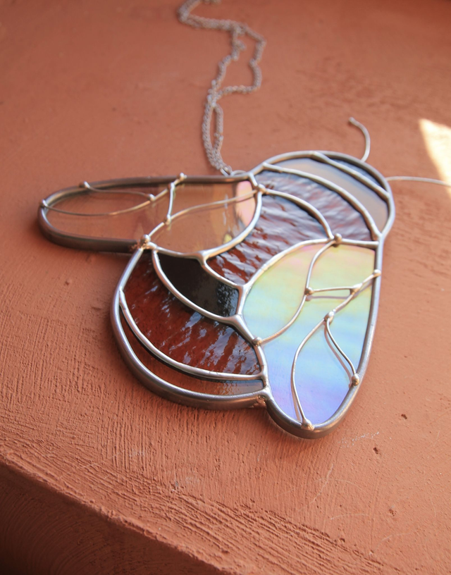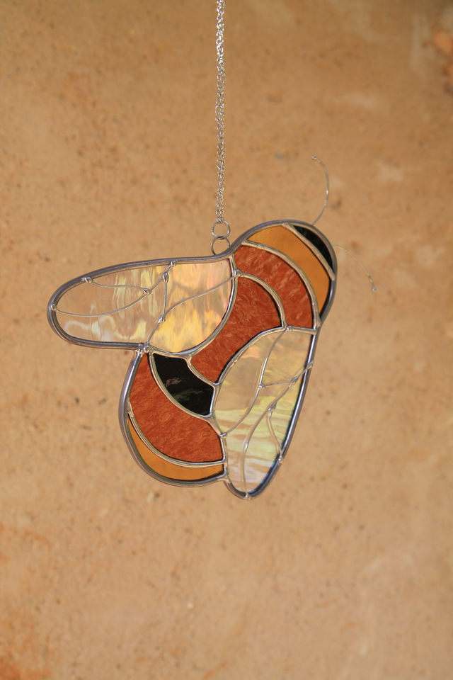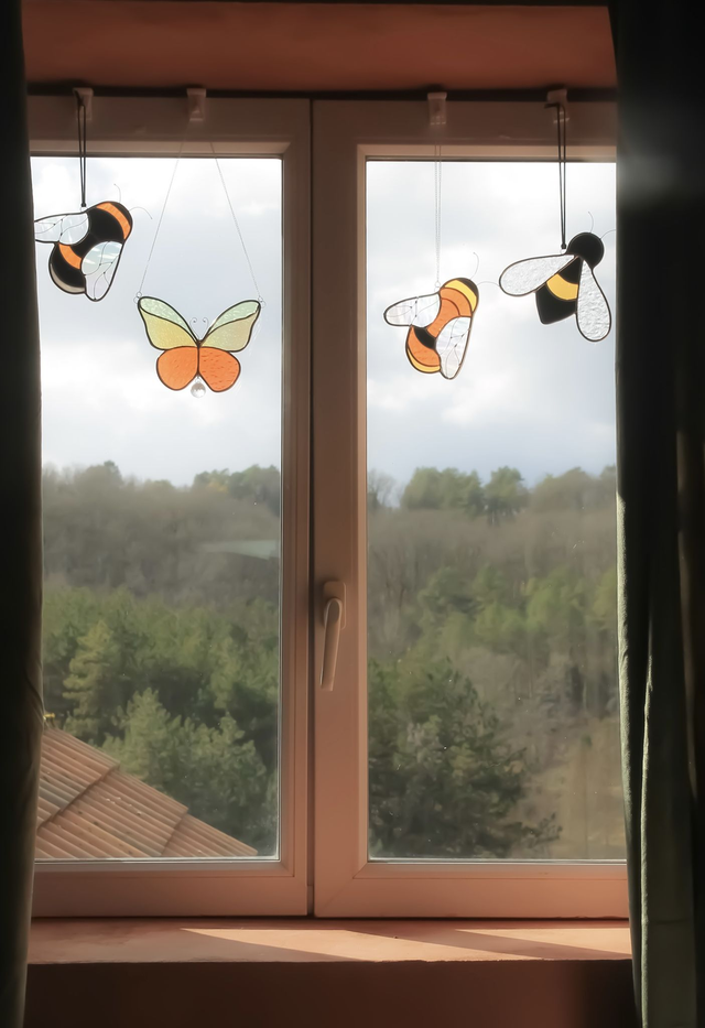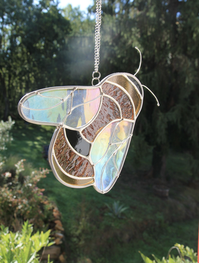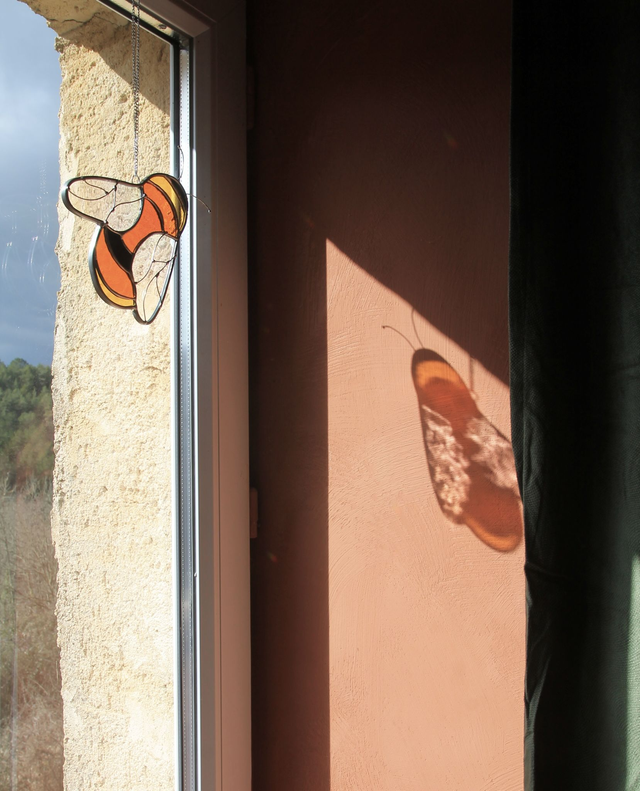 Chaque pièce est façonnée à la main dans mon atelier du Périgord, et assemblée au cuivre, à l’étain et au plomb, selon la technique Tiffany.