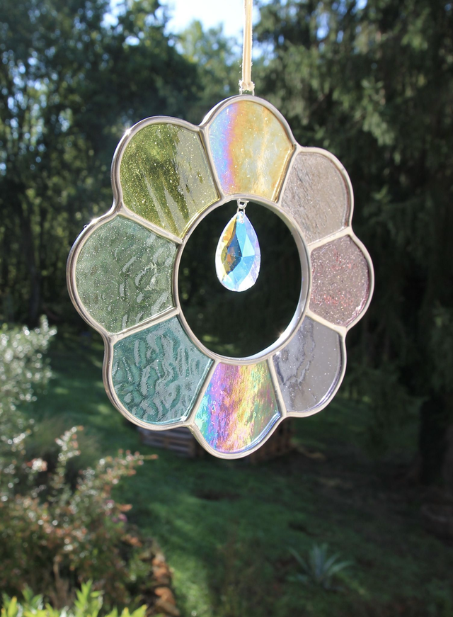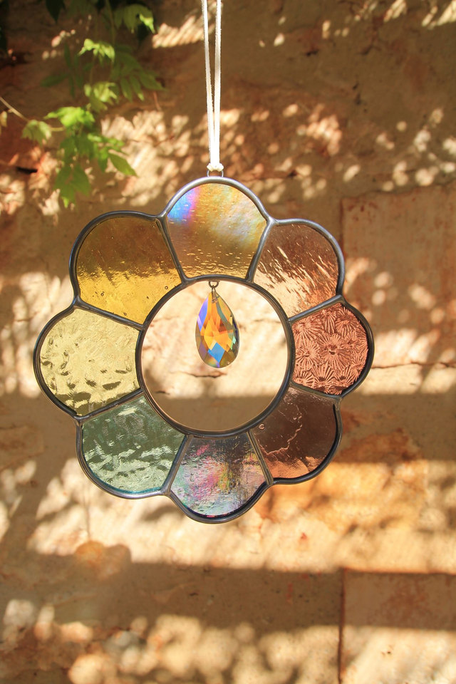 Chaque pièce est façonnée à la main dans mon atelier du Périgord, et assemblée au cuivre, à l’étain et au plomb, selon la technique Tiffany.