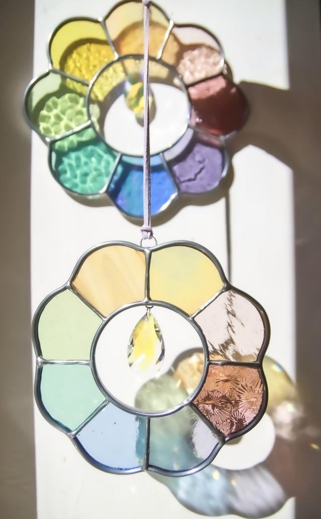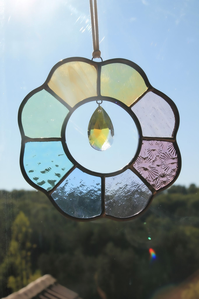 Chaque pièce est façonnée à la main dans mon atelier du Périgord, et assemblée au cuivre, à l’étain et au plomb, selon la technique Tiffany.