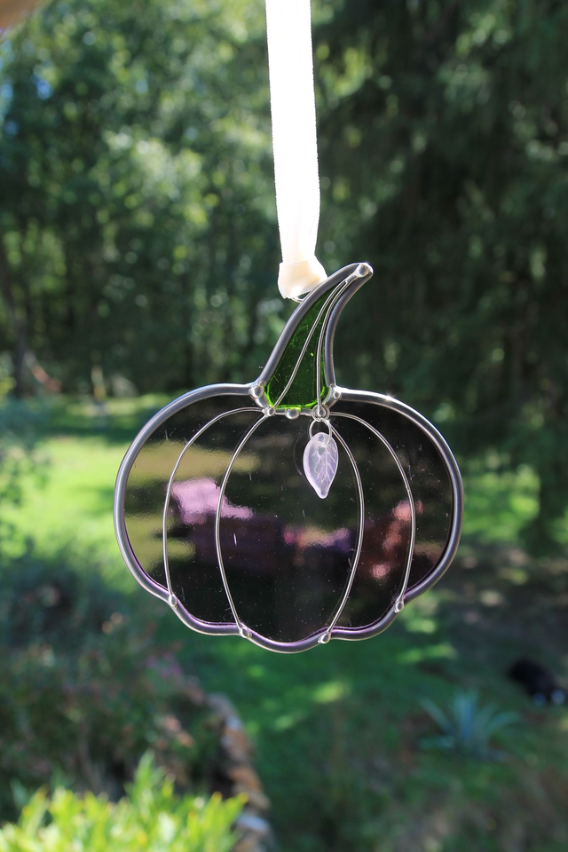 Elle porte encore une feuille délicate, façonnée en verre de République Tchèque, comme un souvenir de son potager.