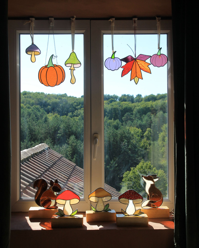 Chaque pièce est façonnée à la main dans mon atelier du Périgord, et assemblée au cuivre, à l’étain et au plomb, selon la technique Tiffany.