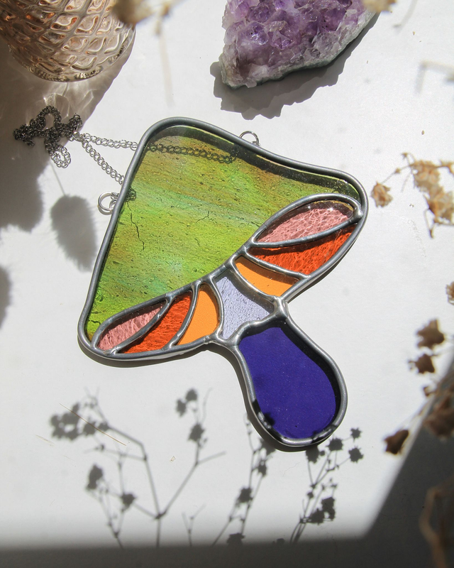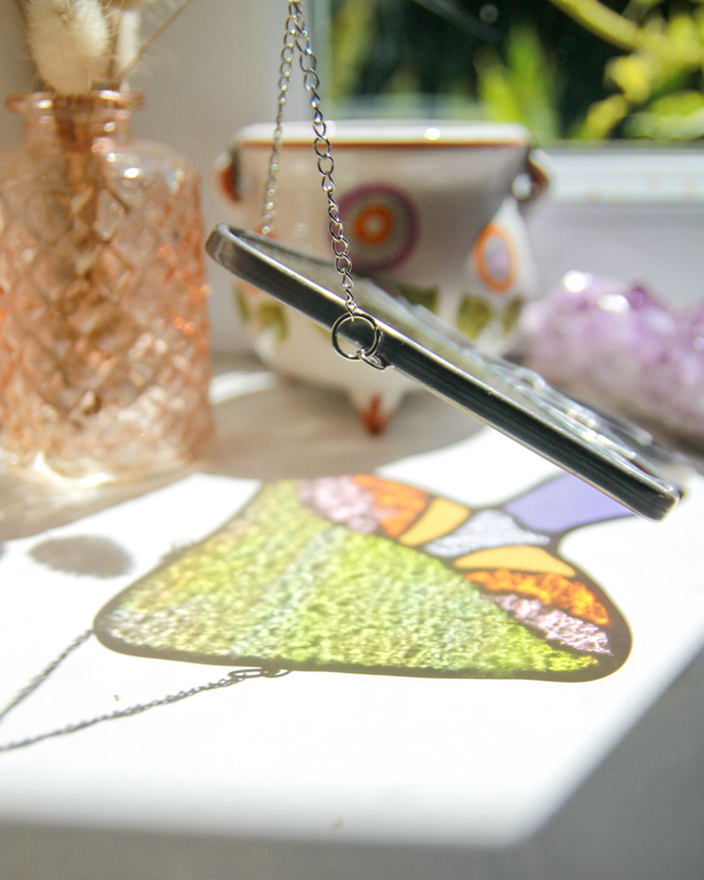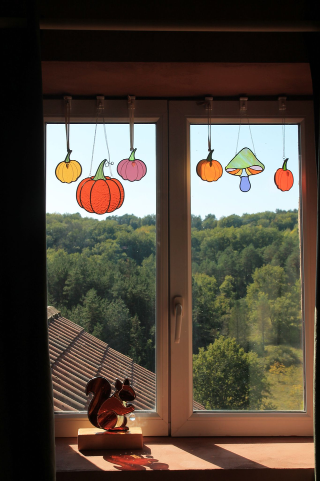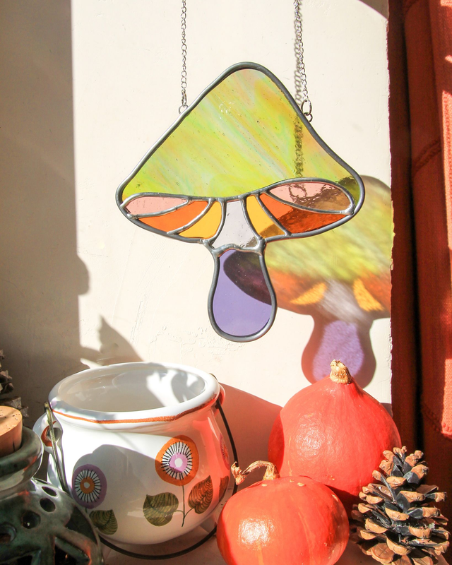 Chaque pièce est façonnée à la main dans mon atelier du Périgord, et assemblée au cuivre, à l’étain et au plomb, selon la technique Tiffany.