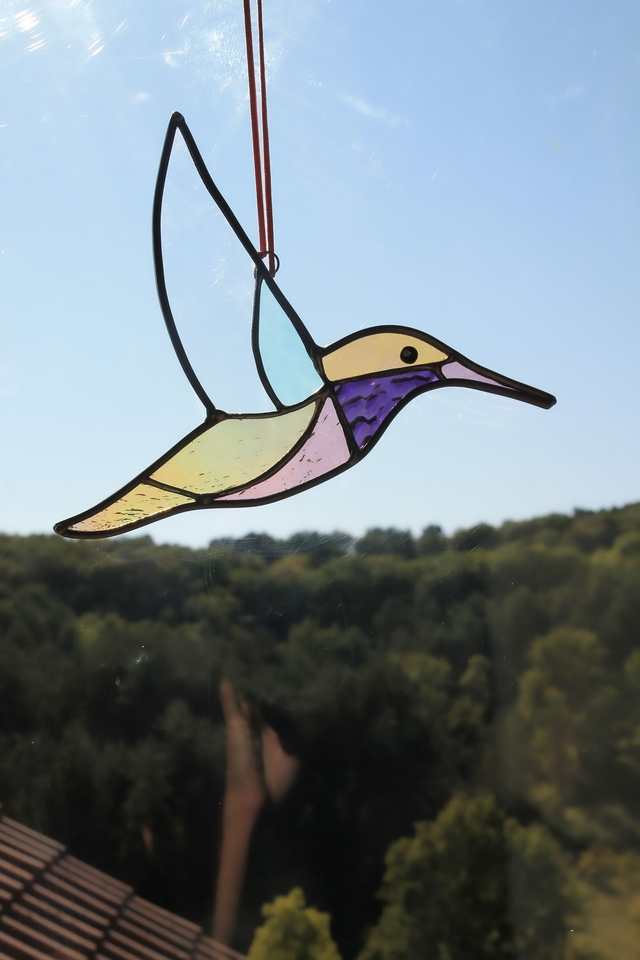 Chaque pièce est façonnée à la main dans mon atelier du Périgord, et assemblée au cuivre, à l’étain et au plomb, selon la technique Tiffany.
