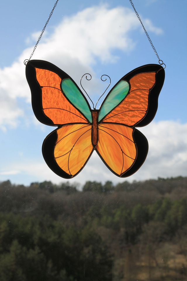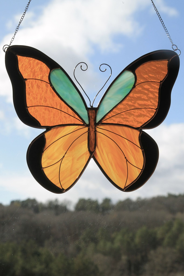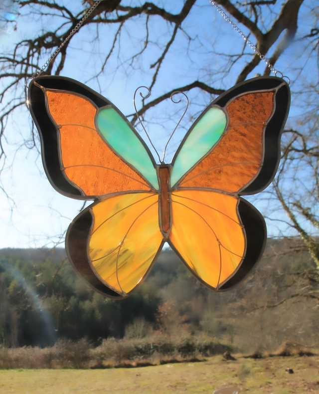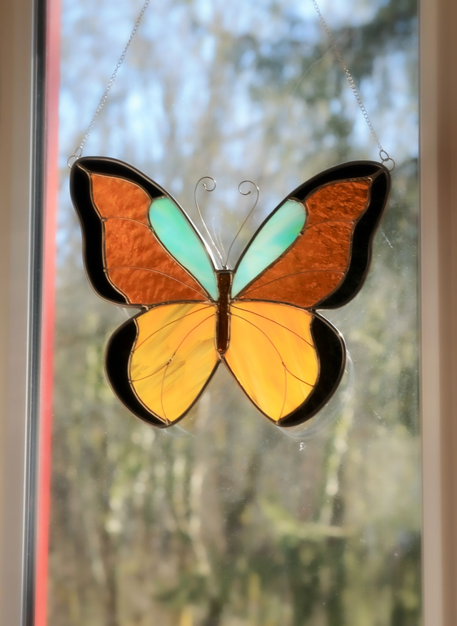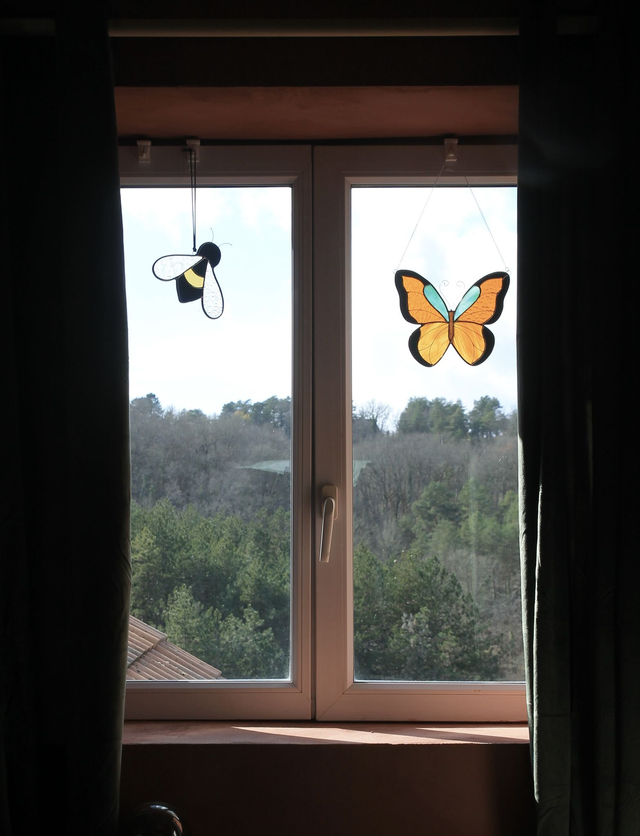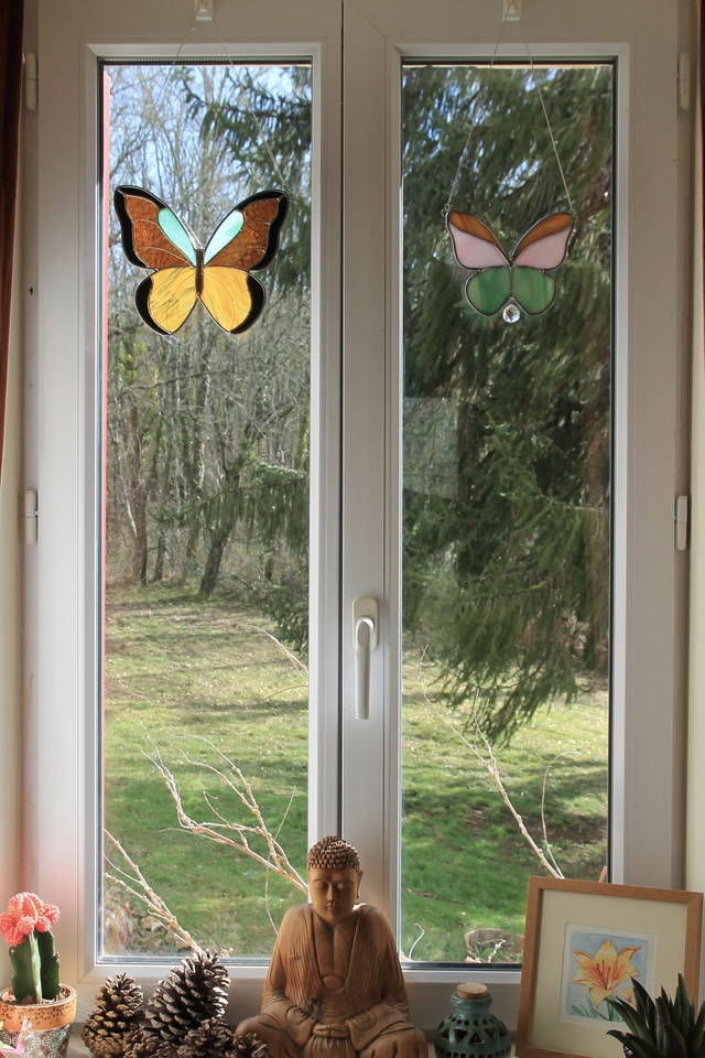 Chaque pièce est façonnée à la main dans mon atelier du Périgord, et assemblée au cuivre, à l’étain et au plomb, selon la technique Tiffany.