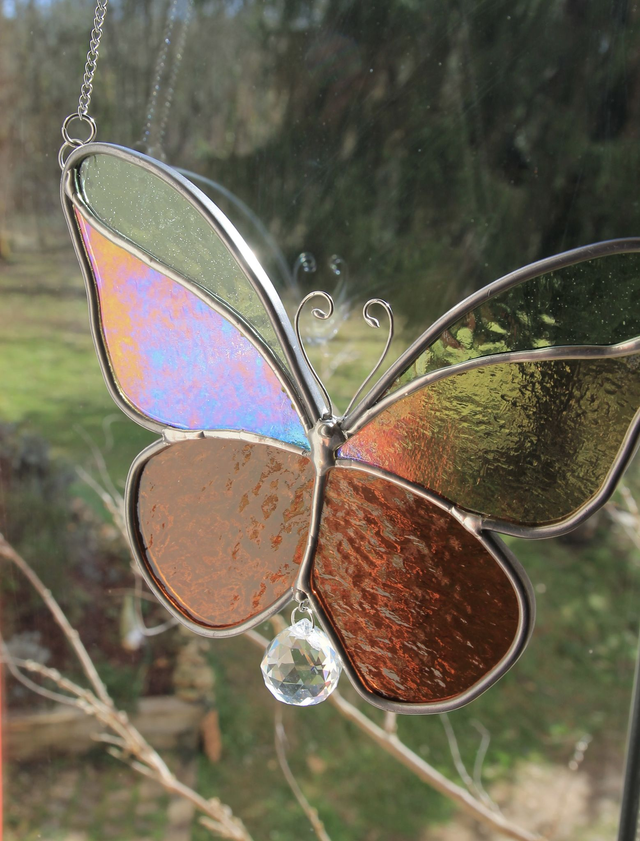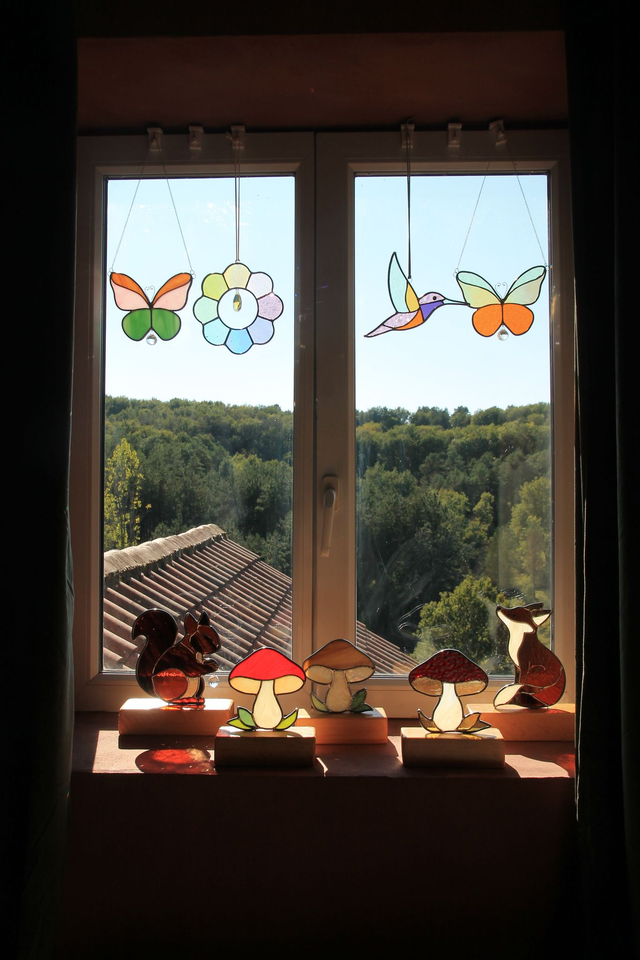 Chaque pièce est façonnée à la main dans mon atelier du Périgord, et assemblée au cuivre, à l’étain et au plomb, selon la technique Tiffany.
