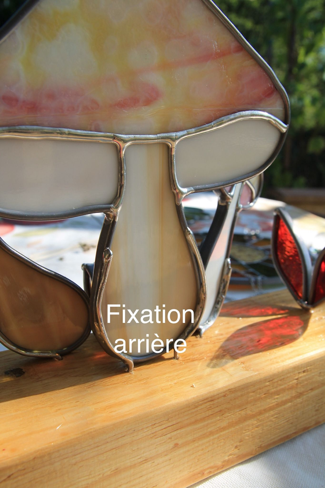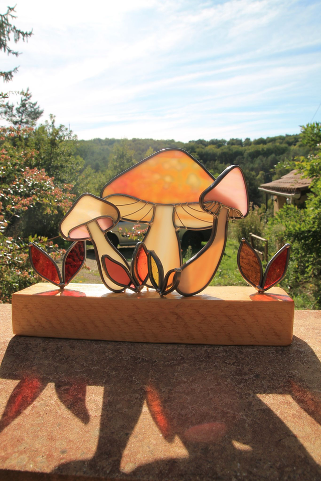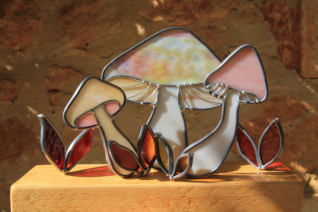 - Verre : opalescent (champignons), transparent & opalescent (feuilles)