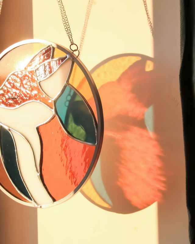 Chaque pièce est façonnée à la main dans mon atelier du Périgord, et assemblée au cuivre, à l’étain et au plomb, selon la technique Tiffany.