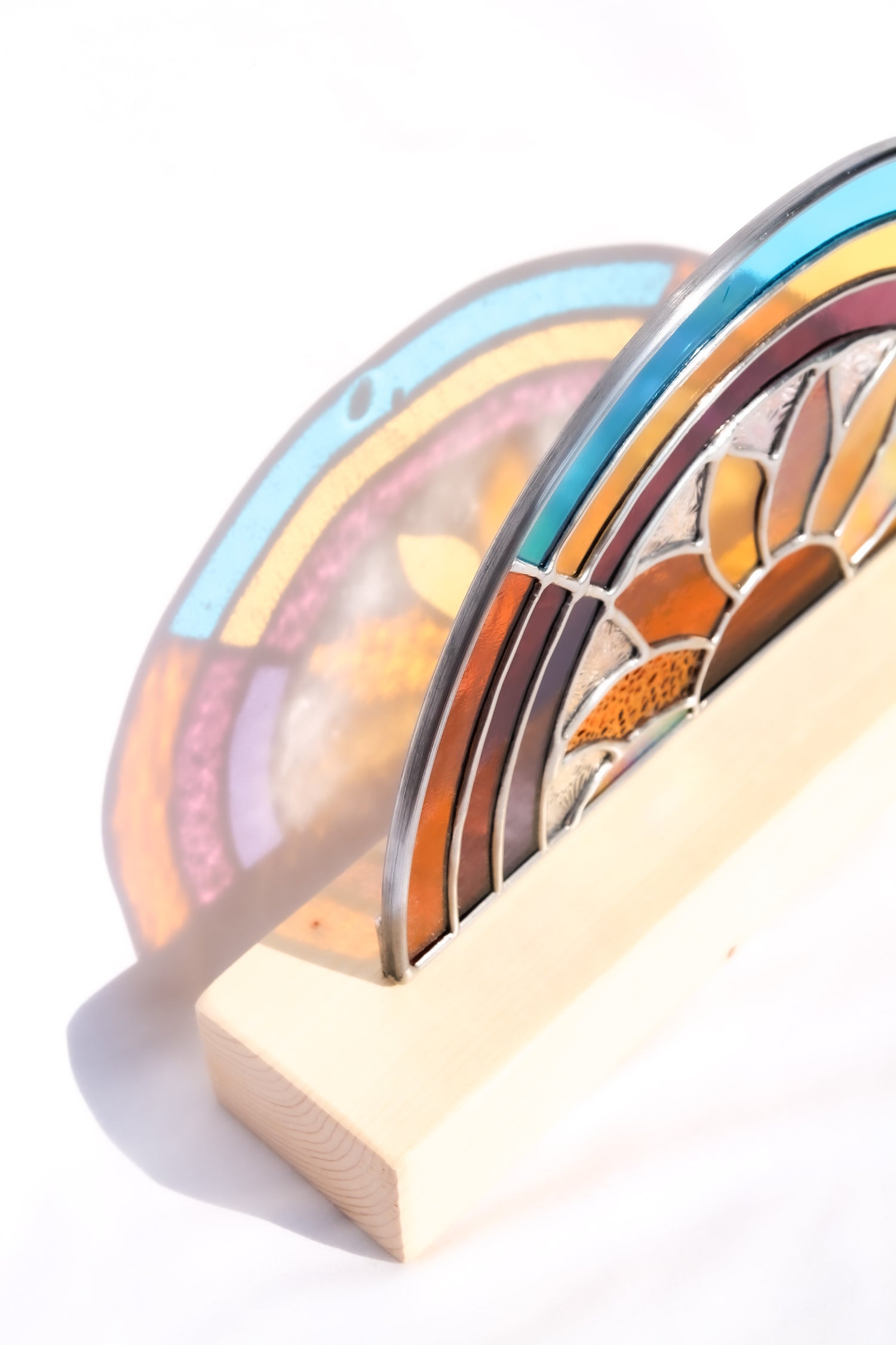 Le vitrail est tout simplement à couper le souffle. Mais, même avant de le découvrir, j'étais tellement heureuse à chacune des étapes vers le colis. D'abord la petite enveloppe, avant même de l'ouvrir l'attention était déjà particulièrement touchante. Dedans, trois sachets de thé. Qu'est-ce que trois sachets de thé ? Diront certains. L'apaisement. Répondrai-je. L'apaisement de savoir que quelqu'un prend soin de nous. L'apaisement de recevoir un cadeau. L'apaisement face à la surprise. L'apaisement de l'image que le thé chaud renvoie. Et puis, il y a eu les plantes. Elles sentent tellement bon. Ce colis aura touché à tous mes sens. L'odorat, le toucher, le goût, la vue, et même l'ouïe en déballant toutes ces couches de protection soigneusement enveloppées dans des petites cordelettes.