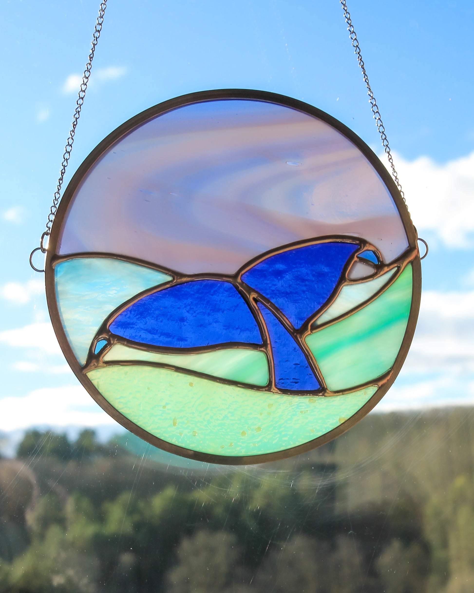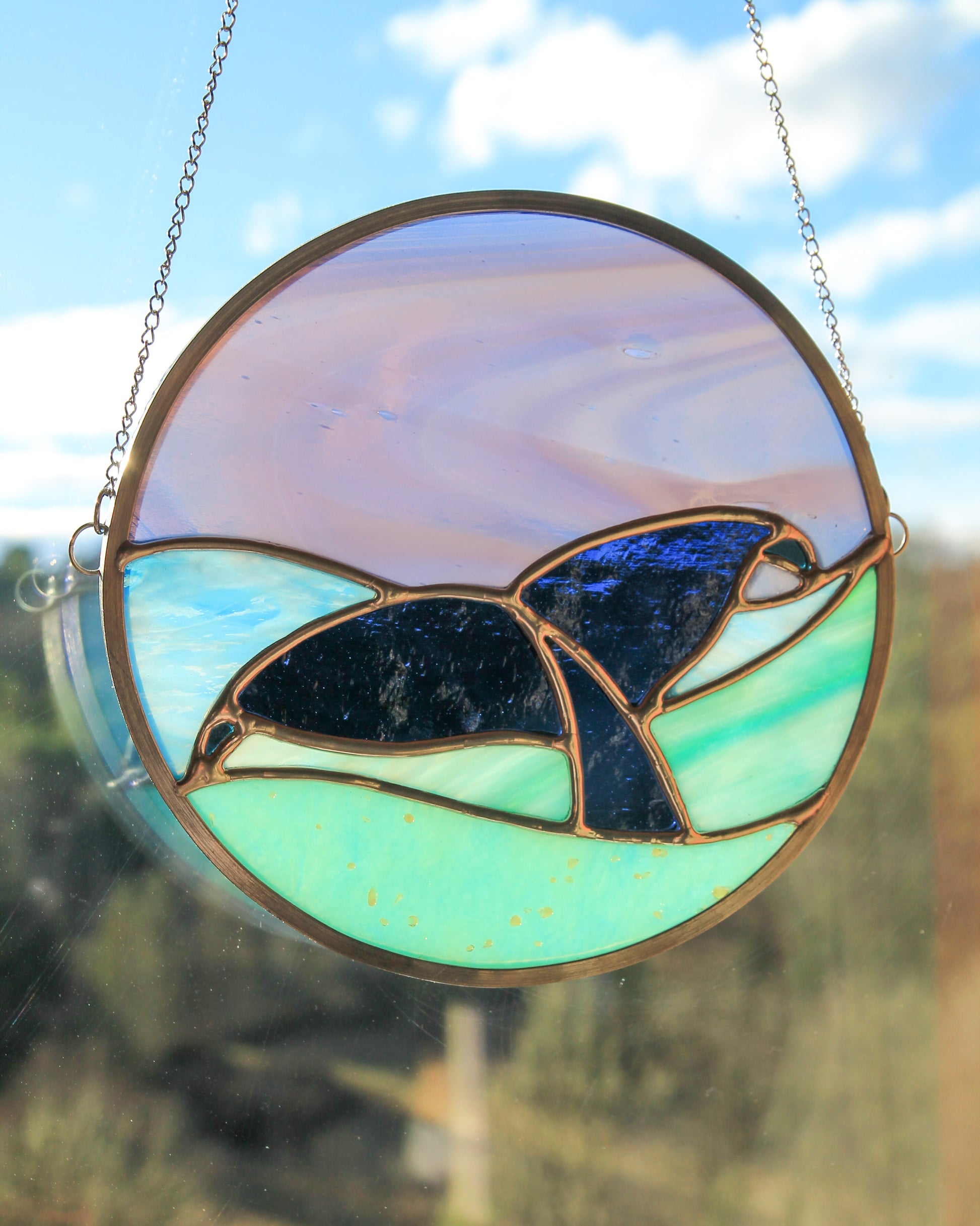 Réalisé à la main dans mon atelier du Périgord, ce vitrail est façonné selon la technique Tiffany, à partir de verres opalescents et translucides choisis pour leur richesse de texture et de lumière. Chaque élément est assemblé au cuivre, à l’étain et au plomb, selon un savoir-faire artisanal.