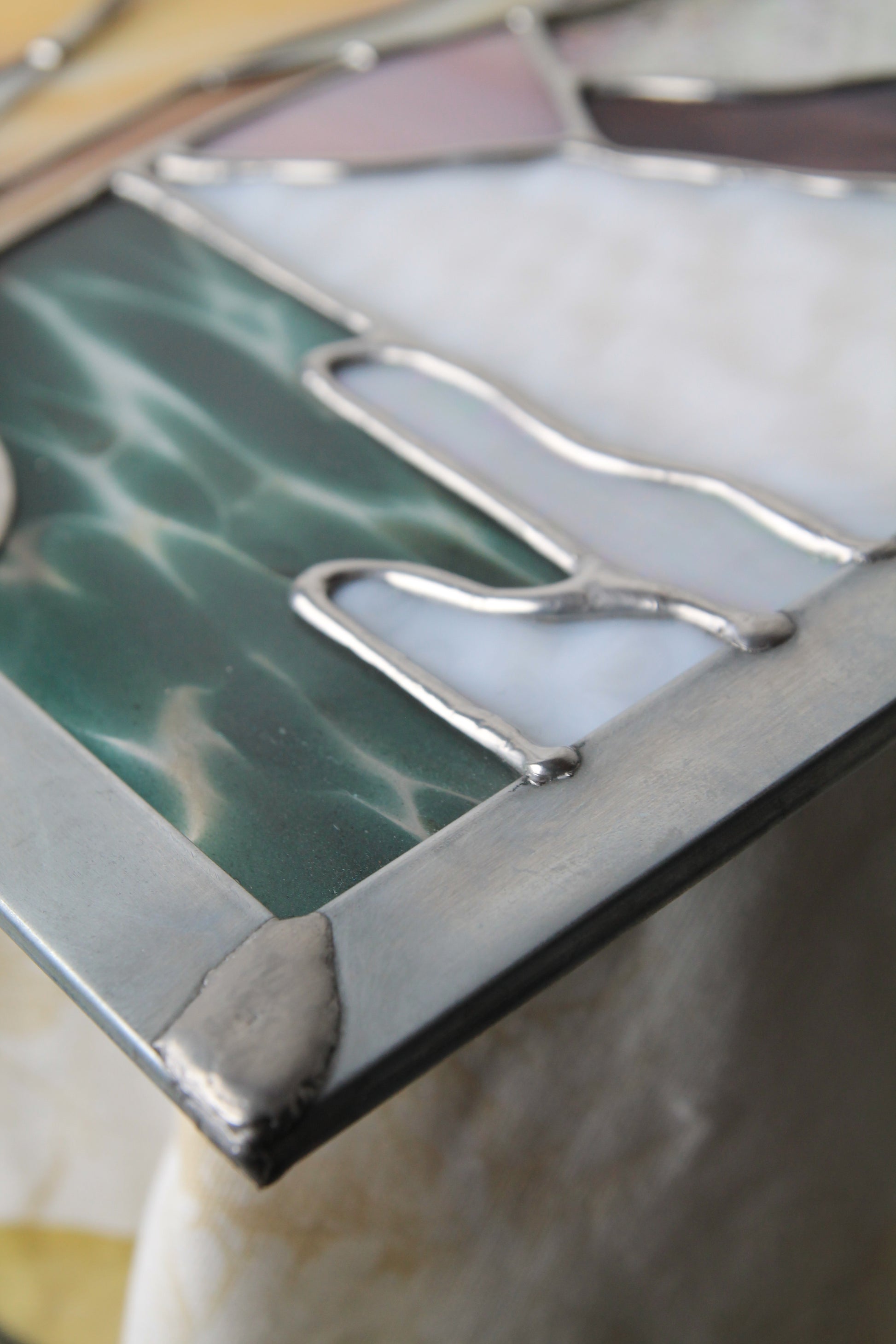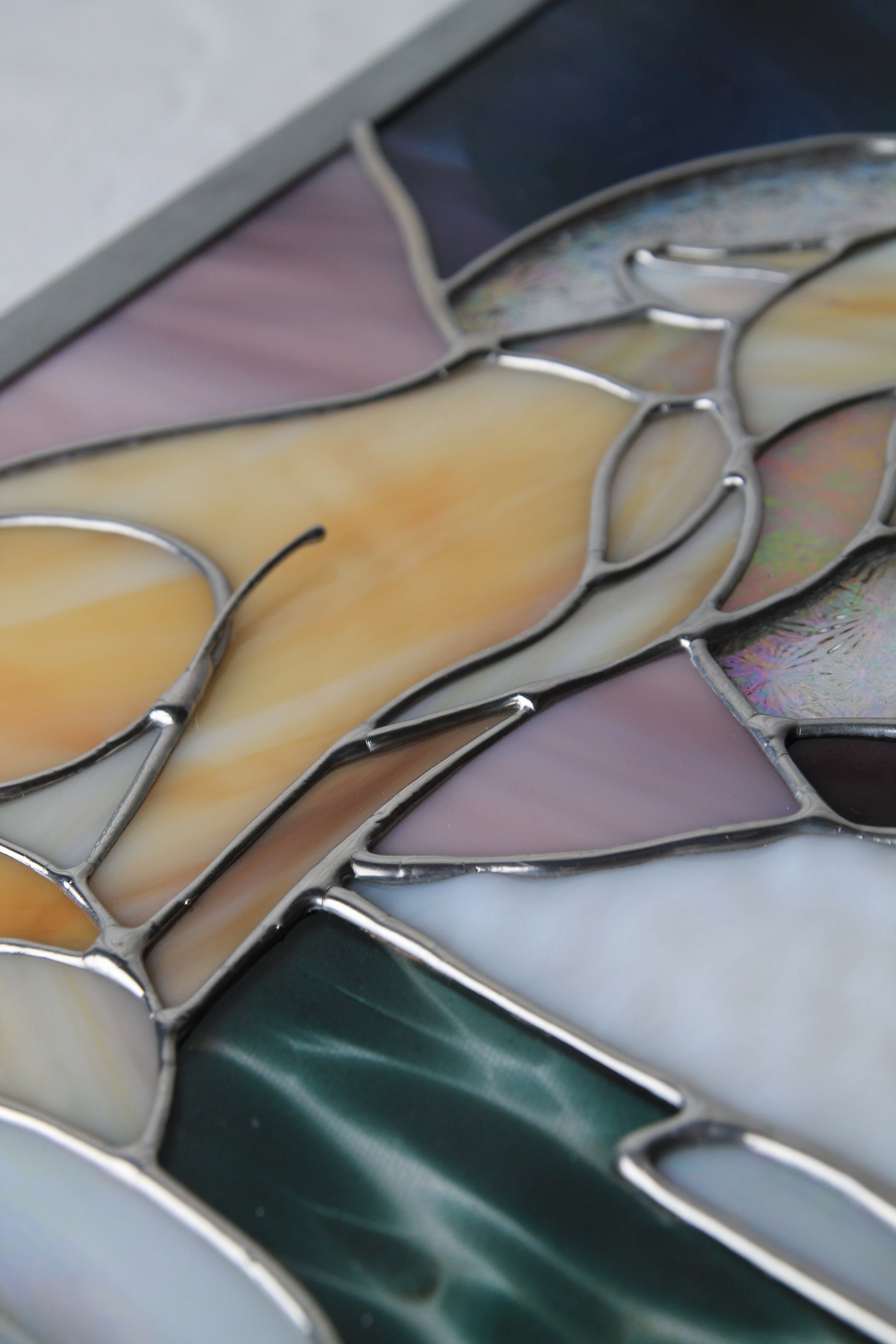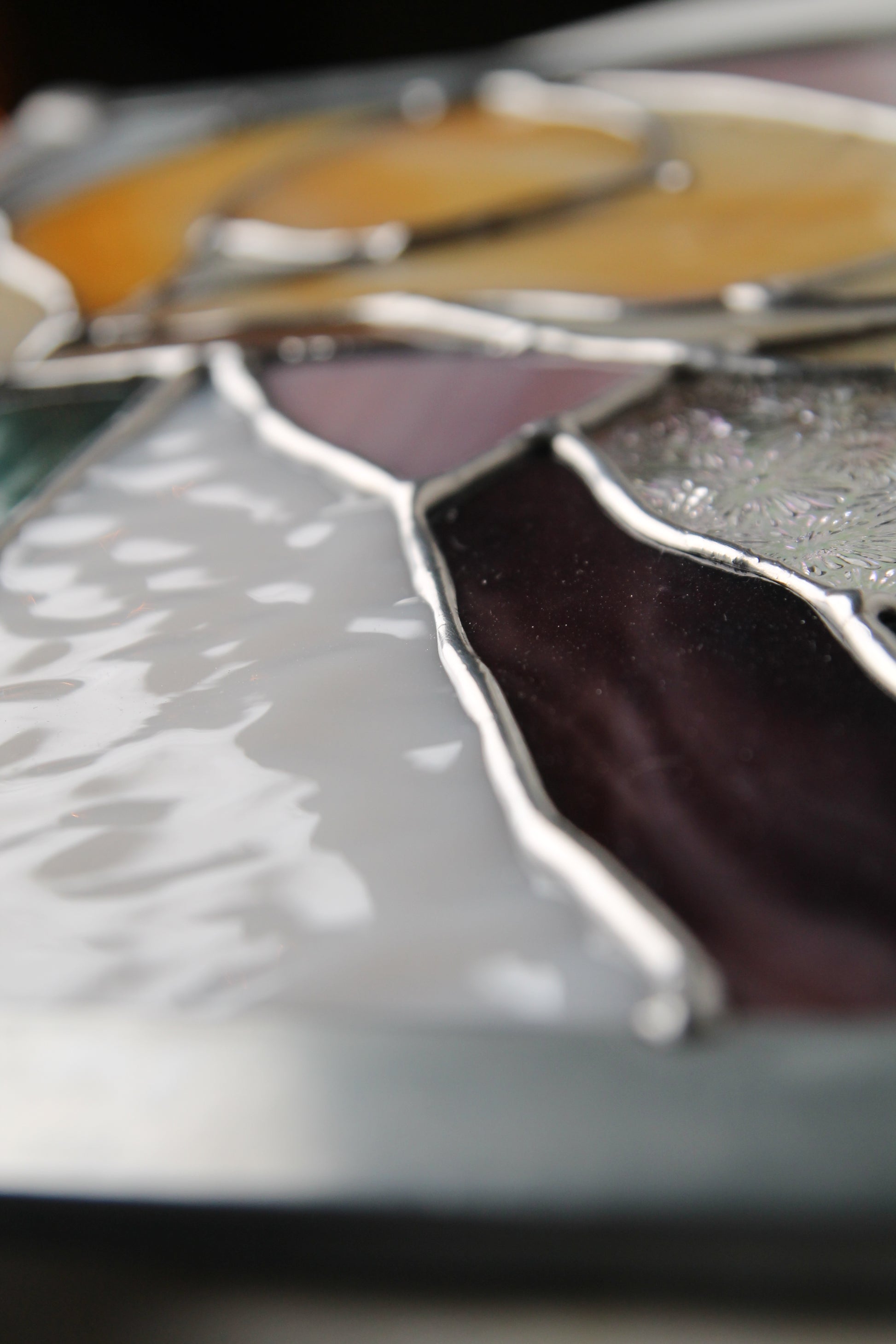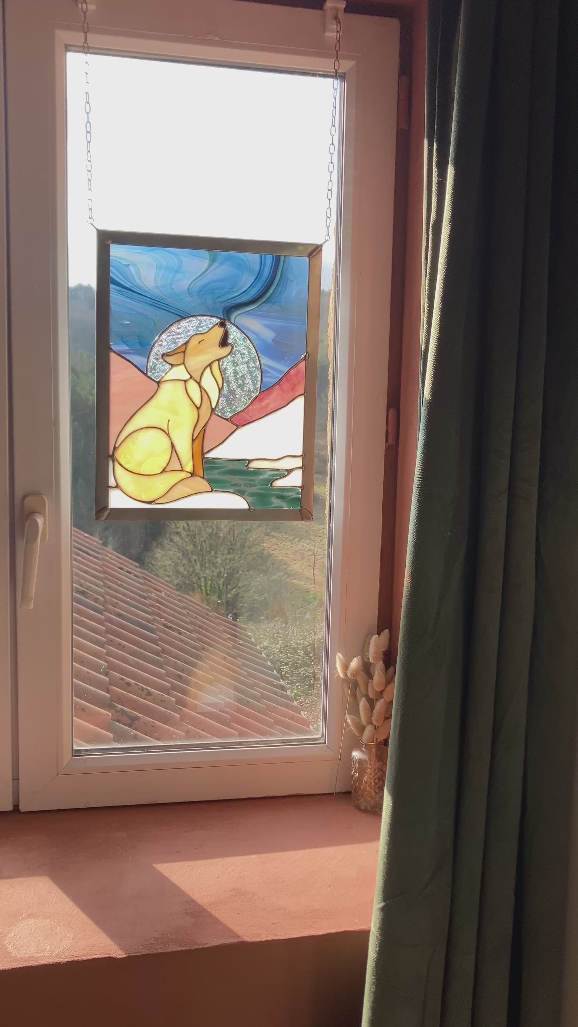 Réalisé à la main dans mon atelier du Périgord, ce vitrail est façonné selon la technique Tiffany, à partir de verres opalescents, translucides et irisés choisis pour leur richesse de texture et de lumière. Chaque élément est assemblé au cuivre et à l’étain, selon un savoir-faire artisanal. Le cadre extérieur est quant à lui réalisé en zinc.