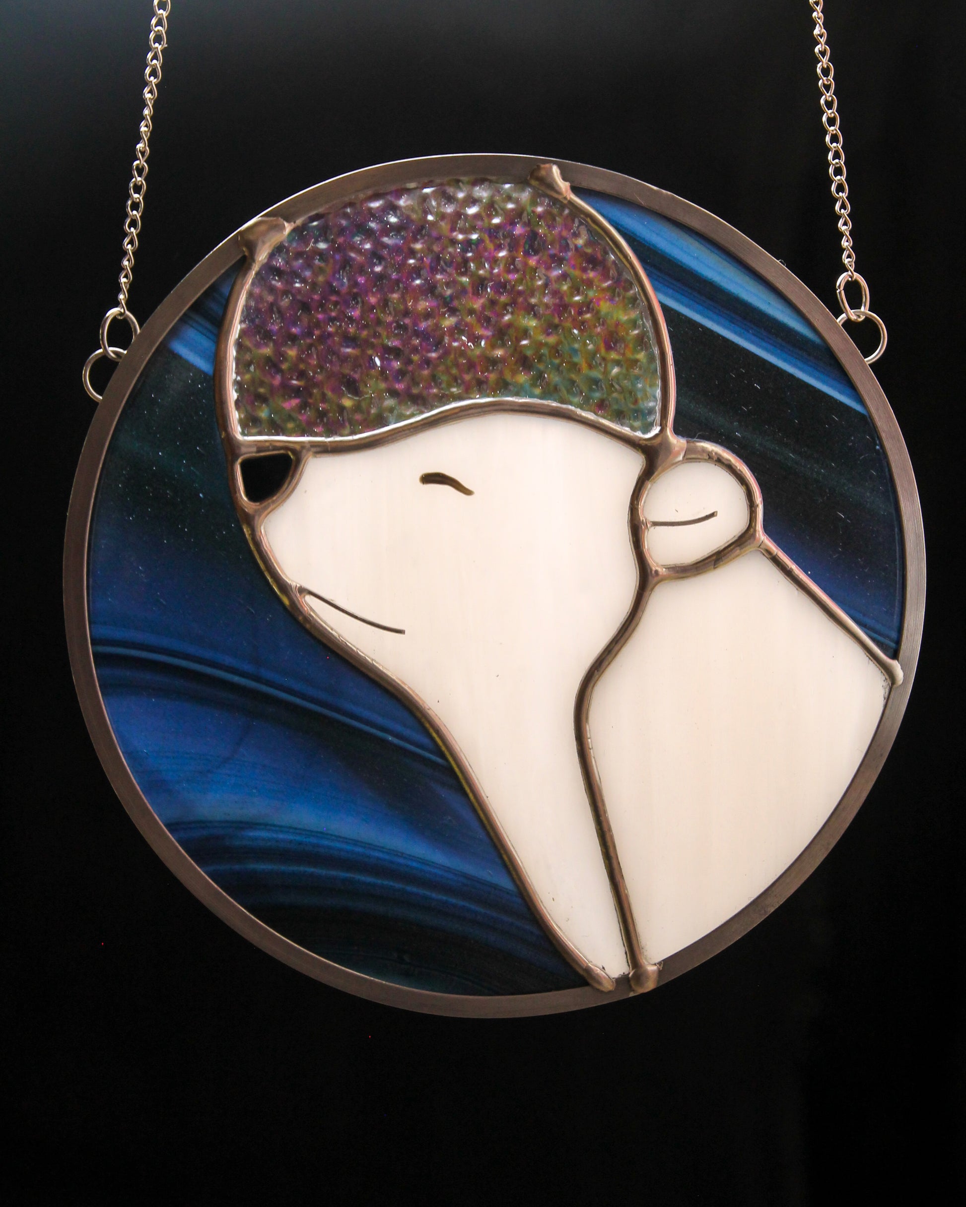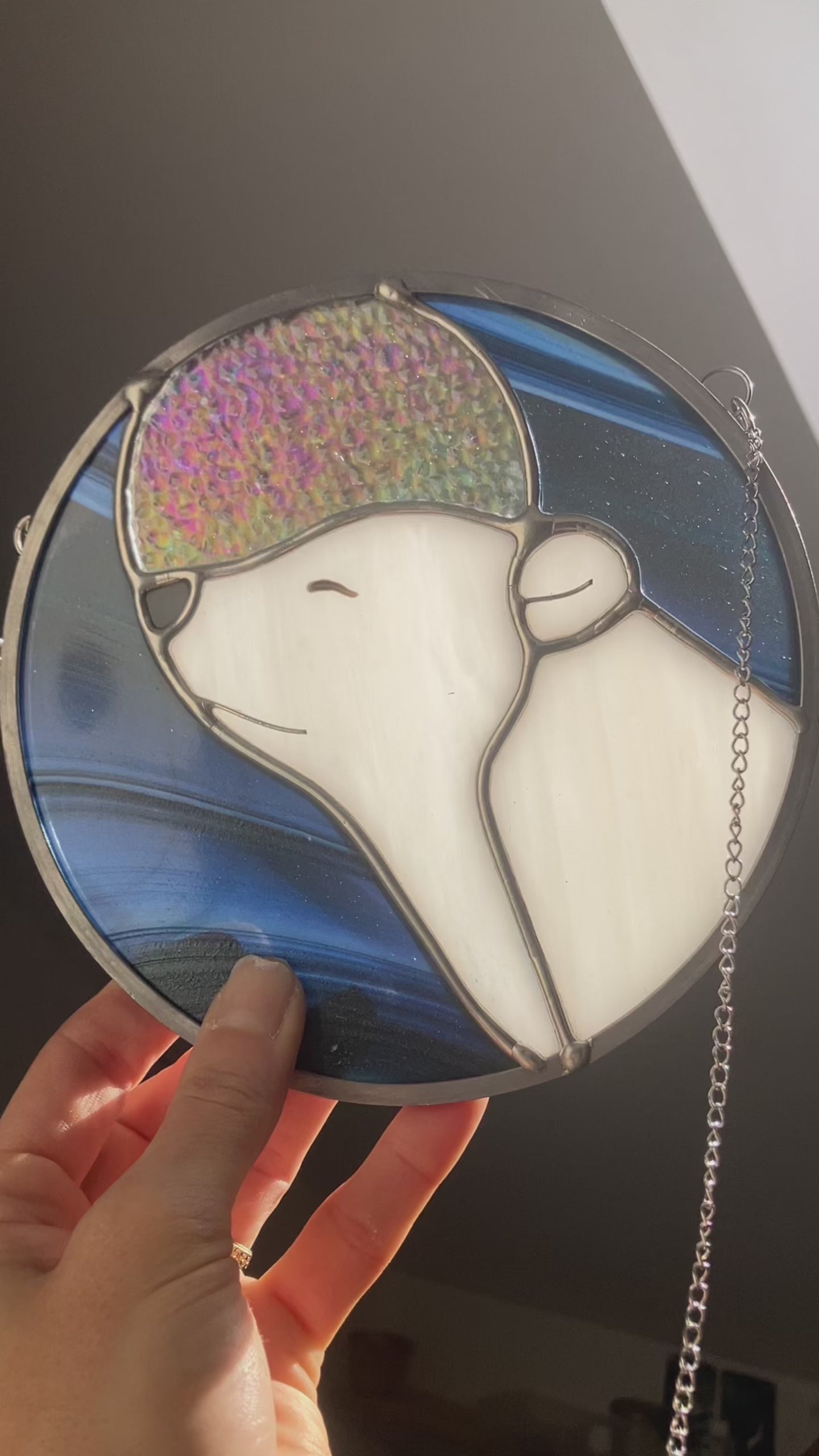 Réalisé à la main dans mon atelier du Périgord, ce vitrail est façonné selon la technique Tiffany, à partir de verres opalescents, translucides et irisés choisis pour leur richesse de texture et de lumière. Chaque élément est assemblé au cuivre, à l’étain et au plomb, selon un savoir-faire artisanal.