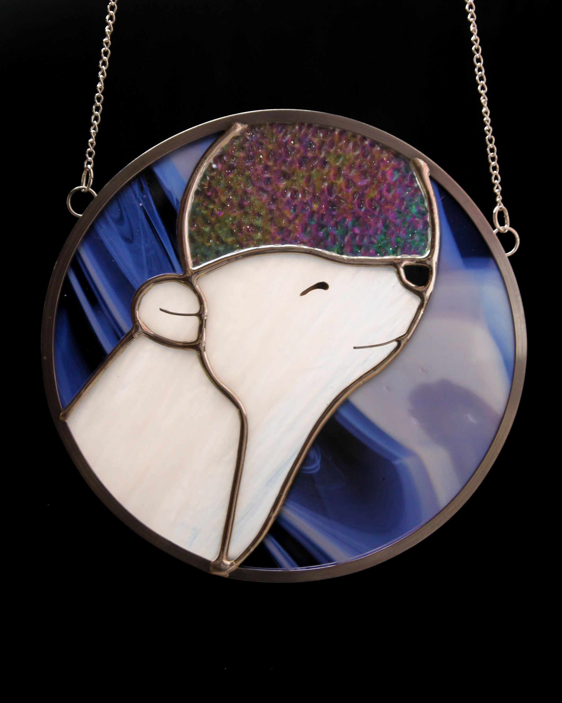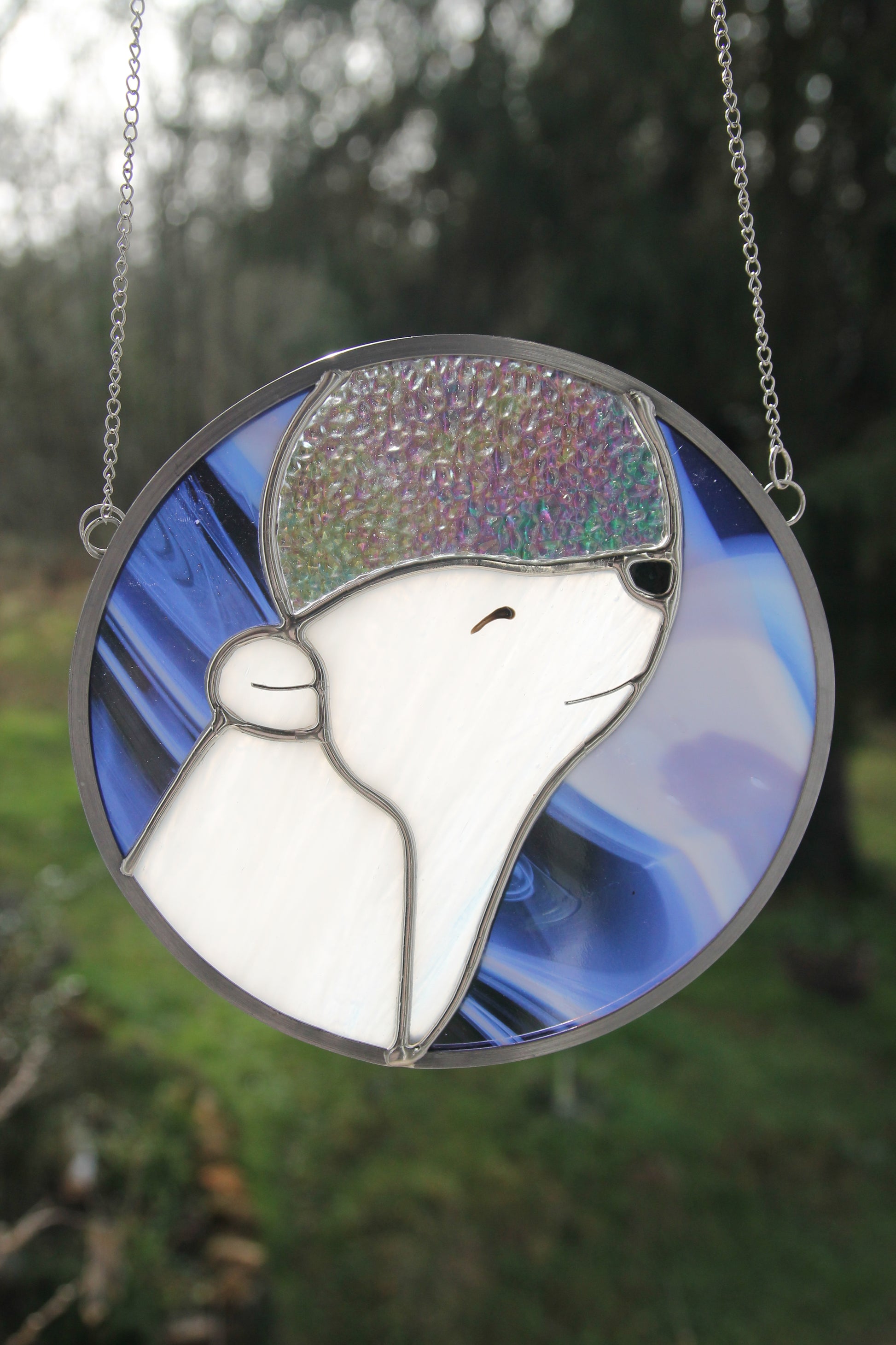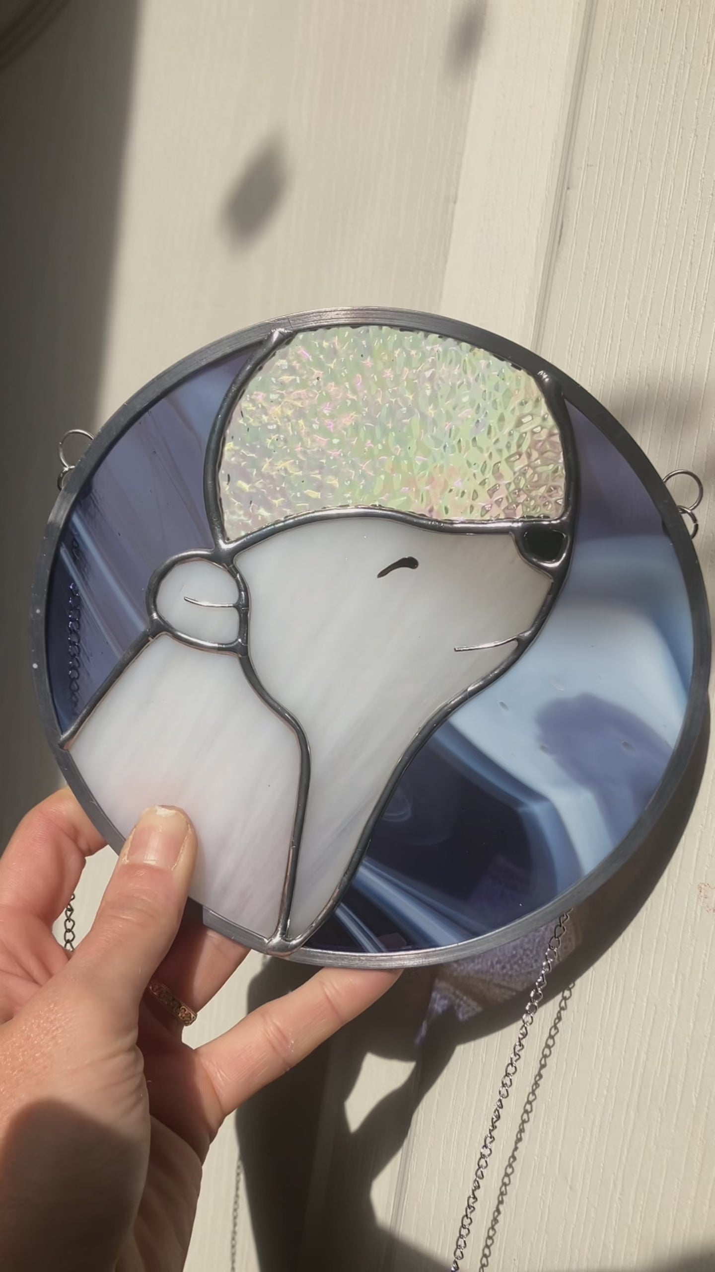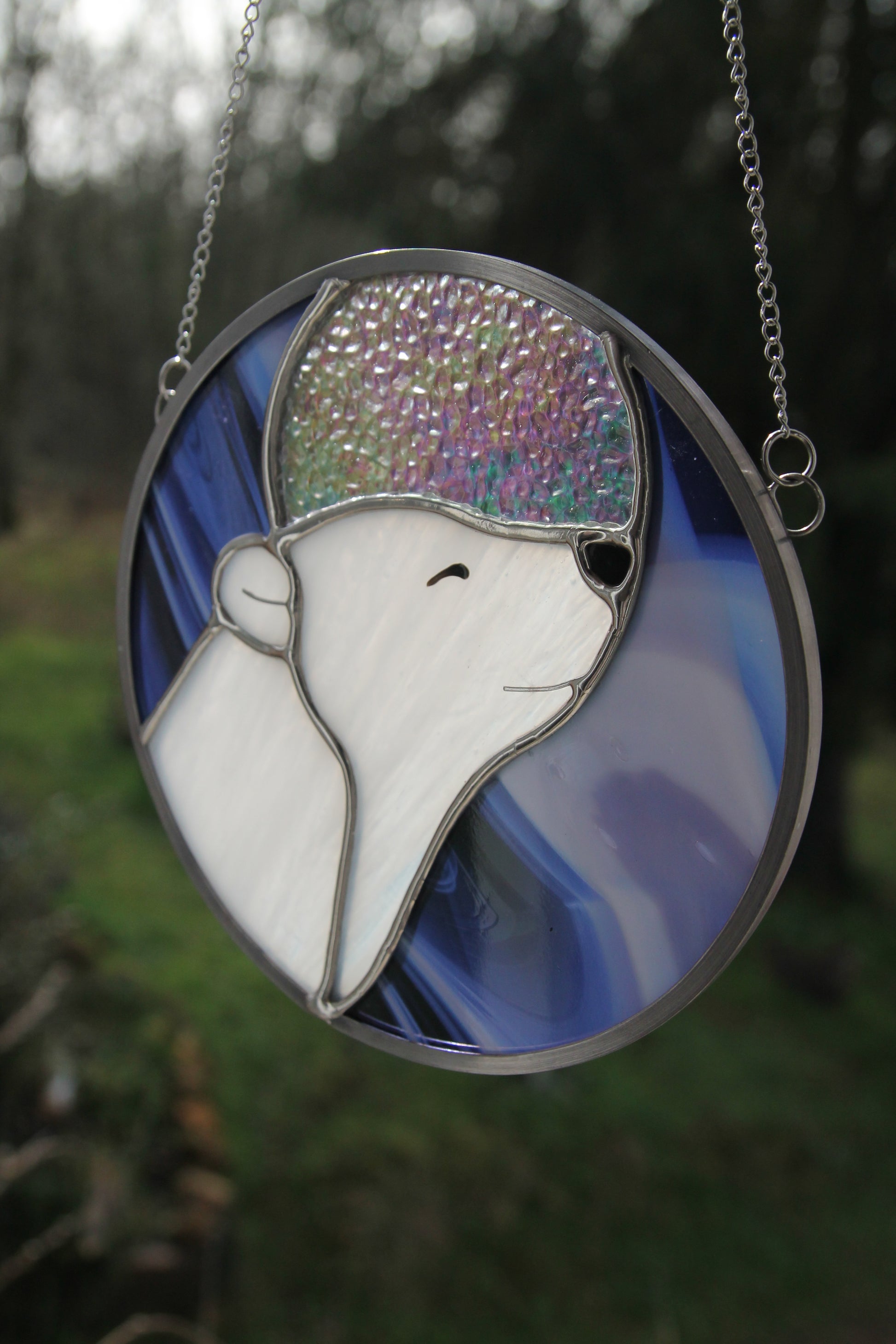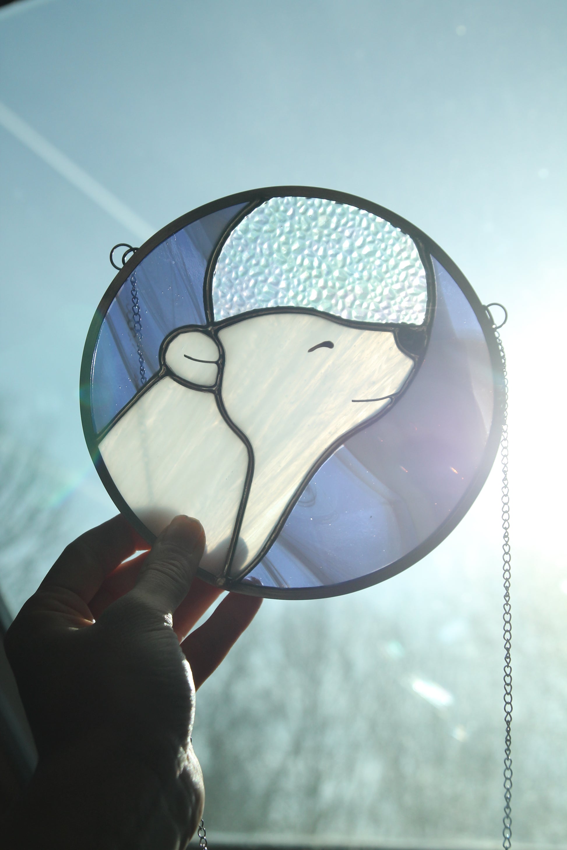 Réalisé à la main dans mon atelier du Périgord, ce vitrail est façonné selon la technique Tiffany, à partir de verres opalescents, translucides et irisés choisis pour leur richesse de texture et de lumière. Chaque élément est assemblé au cuivre, à l’étain et au plomb, selon un savoir-faire artisanal.